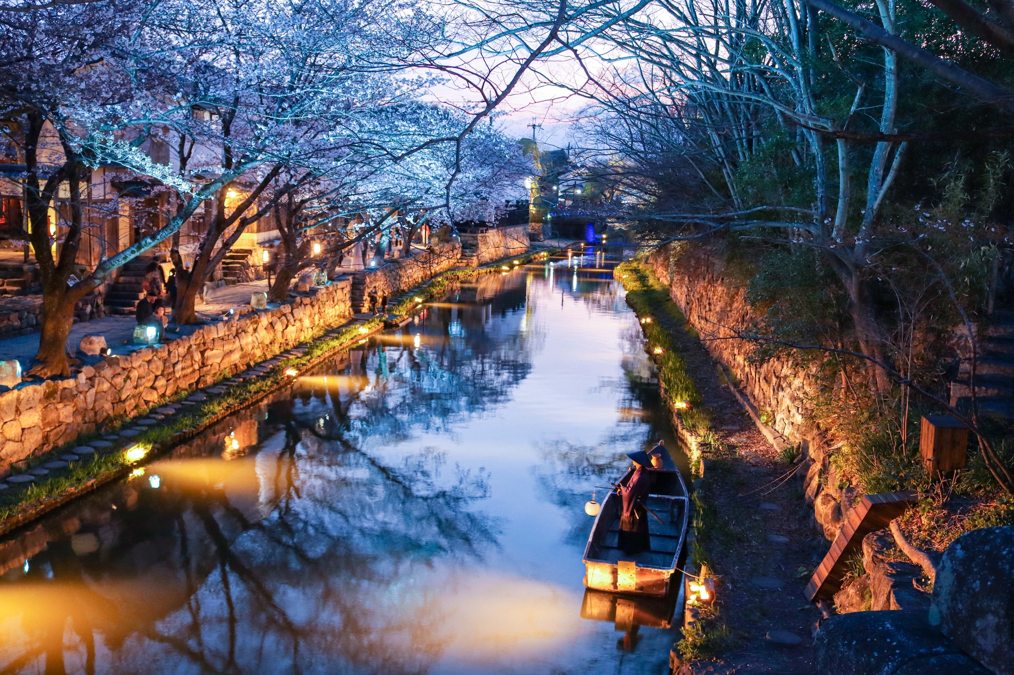 天正13年(1585年)に豊臣秀次(秀吉の甥)が八幡山に城を築いた際に運河として作られた八幡堀では、令和4年から夜間ライトアップを行っており、令和8年4月からは「新町浜」周辺のライトアップも開始します。