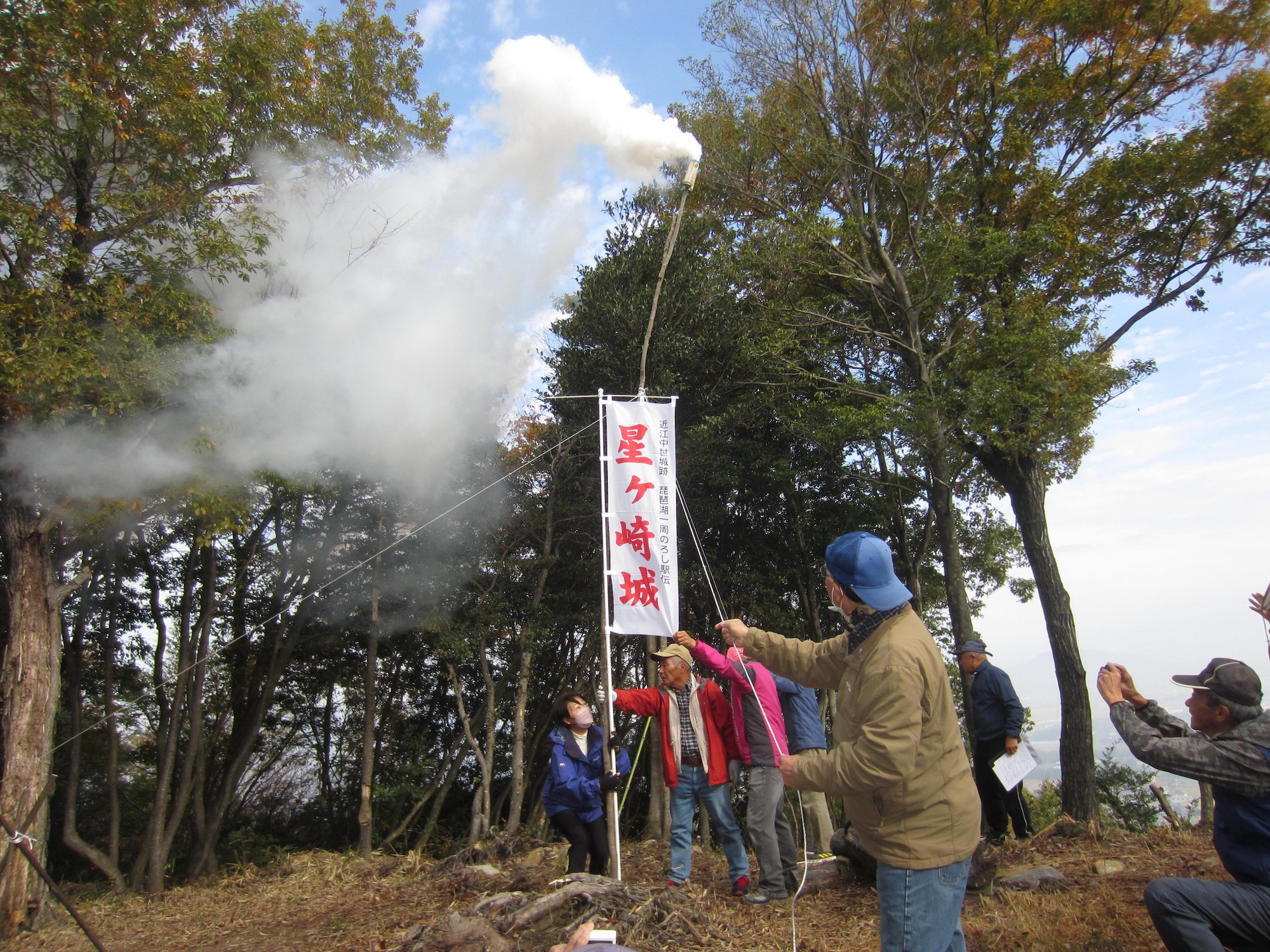 近江中世城跡保存団体連絡会が催す『琵琶湖一周のろし駅伝』。今年の打ち上げは、星ヶ崎城址からスタートします。スタート時刻の午前10:00に星ヶ崎城址よりのろしを打ち上げます。