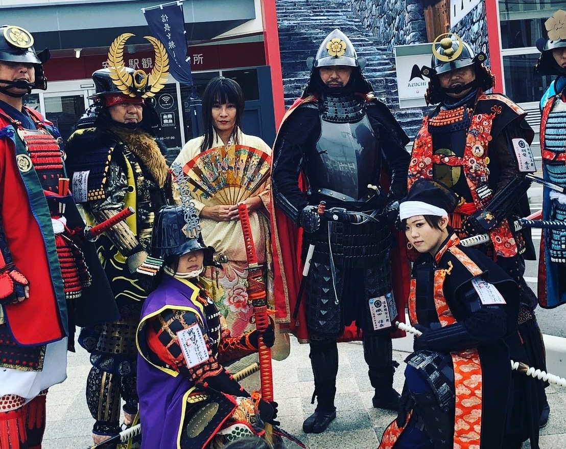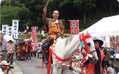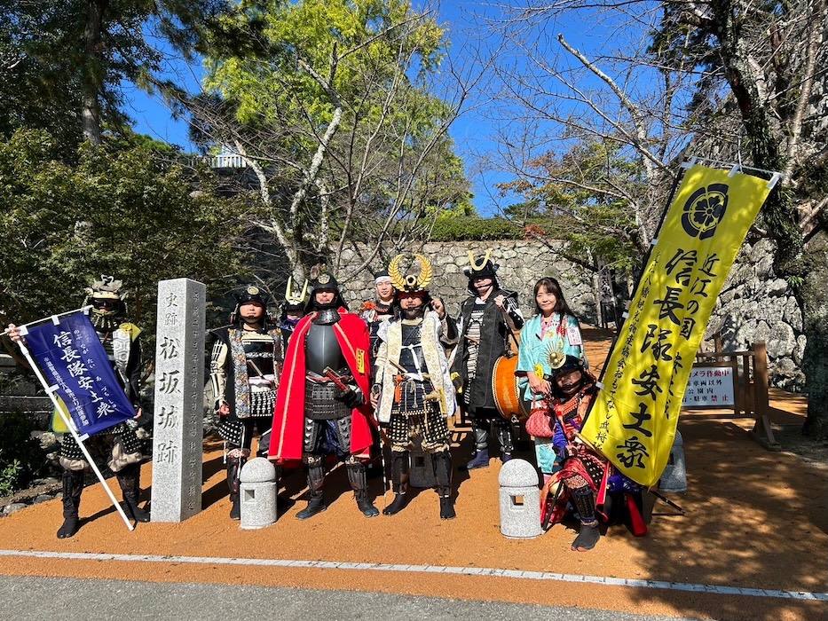 織田信長公をはじめとした武将や姫君、天正少年使節などの衣装を身にまとい安土城下を練り歩き、戦国時代の雰囲気を楽しむことができるイベントです。当日は、地元の特産物や飲食物の販売も行います。